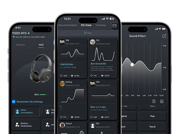 Fine-tune your sound with 32 EQ presets, access 100+ white noise tracks, or explore 2,000+ EQs shared by audiophiles worldwide.
