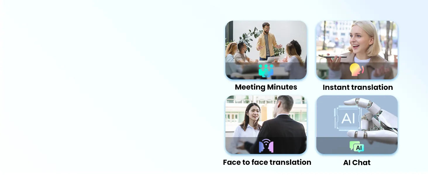 Boost productivity with intelligent tools integrated into your listening experience.- Meeting Minutes- Instant Translation- Face-to-face Translation- Al Chat.