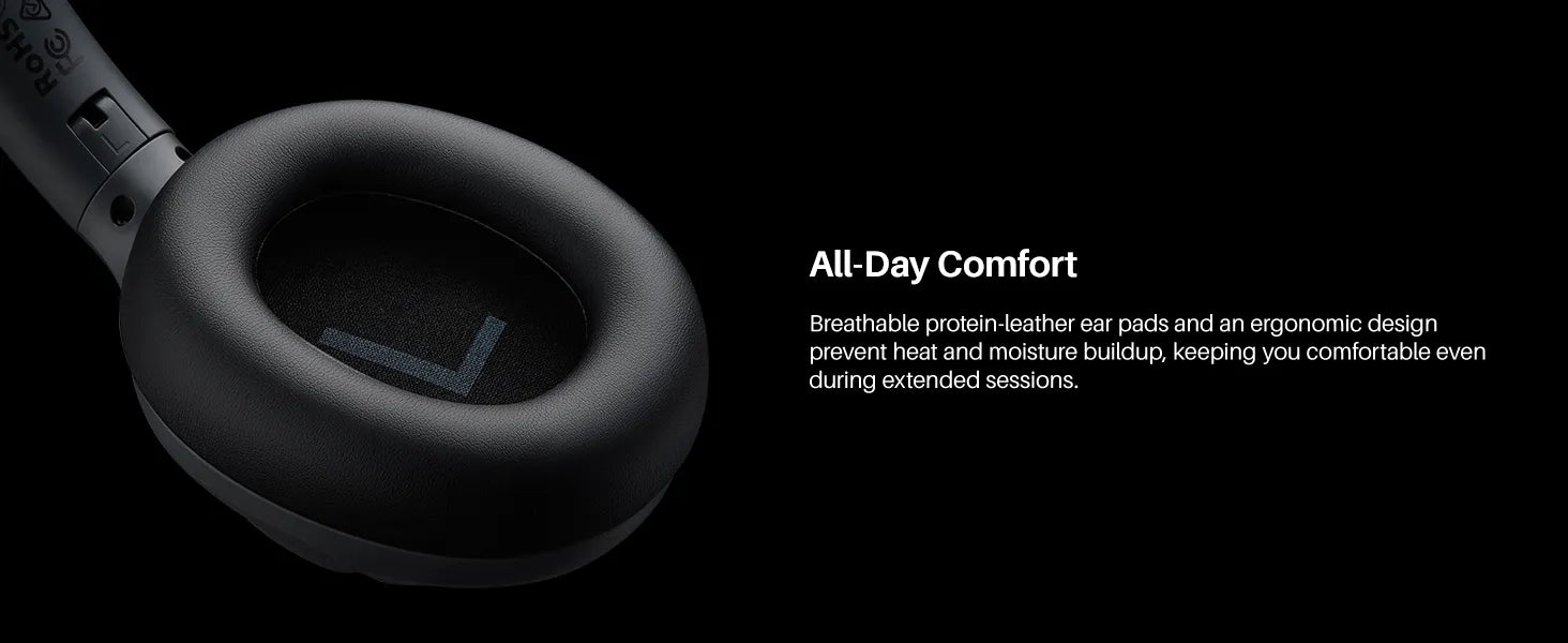Absolutely. The HT3 is designed for all-day comfort. It features soft protein leather ear pads and an ergonomic design with 90° angle rotation joints and an adjustable headband to ensure a customized and breathable fit that prevents heat buildup.