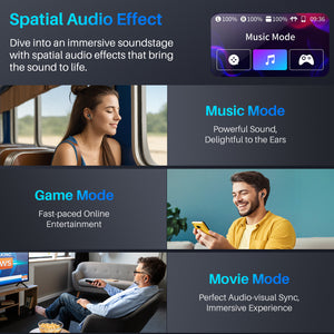 [Integrated 1.47" LCD Screen Charging Case] Our innovative charging case providing easy access to music control/audio adjustment/noise-canceling mode/400MB storage offline playlack, Including a built-in flashlight/find-my-headphone/switch wallpapers feature, making them versatile and practical for everyday use.