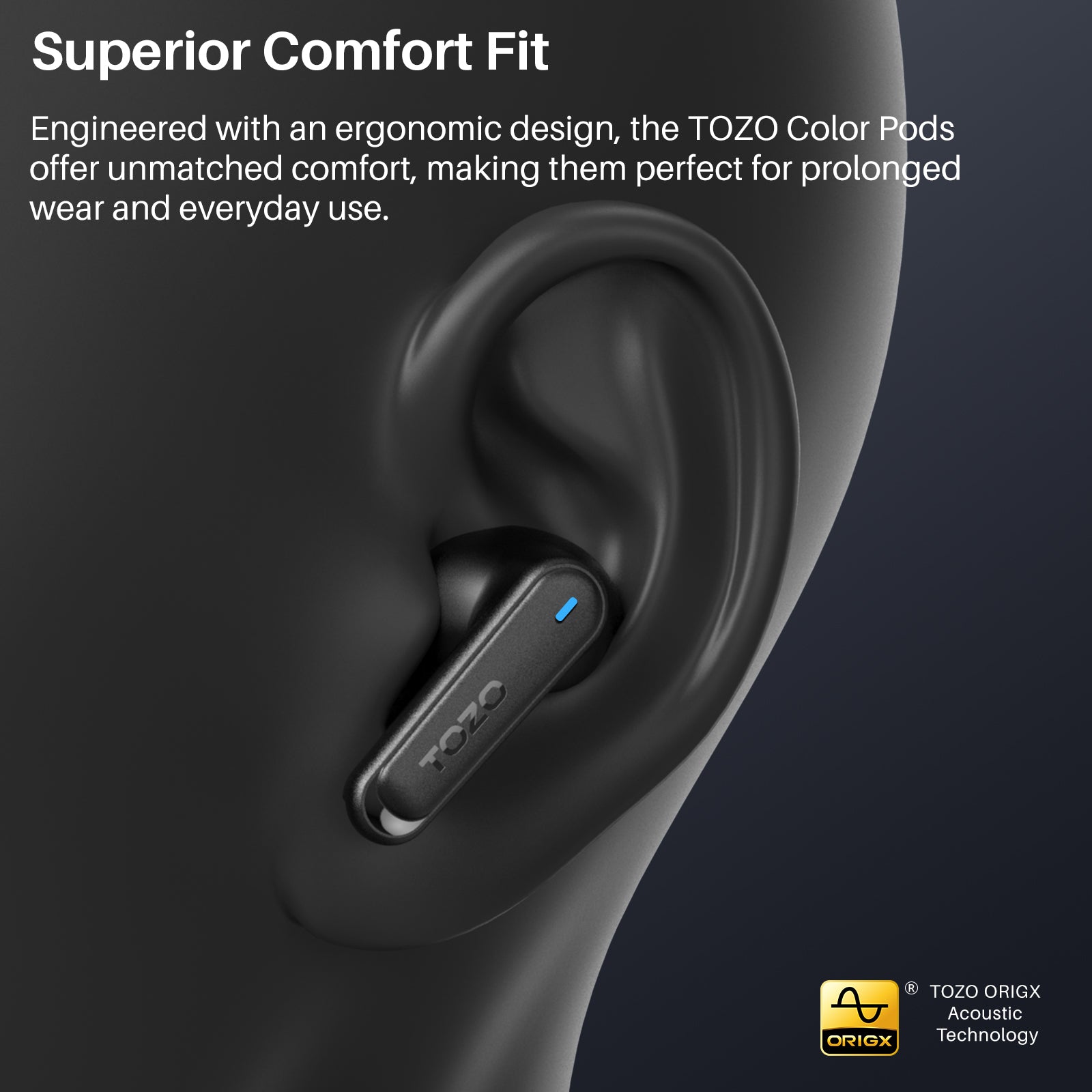 [Comfortable Wearing Experience] TOZO Colorpods ear buds are made with IPX6 waterproof, making them perfect for workouts or outdoor activities. Six pairs of earcaps are included to ensure that everyone gets a comfortable, personalized wearing experience and enjoys hours of listening pleasure.