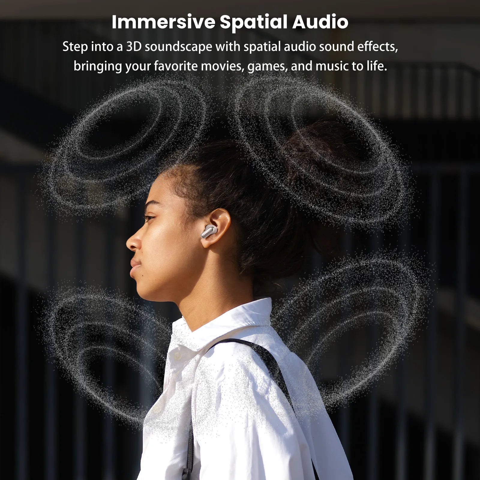 The NC20 Pro features a Smart Touchscreen Case. This full-color display allows you to directly control various functions from the case, including switching noise-canceling modes, adjusting EQ, answering calls, and controlling playback, offering unprecedented convenience.