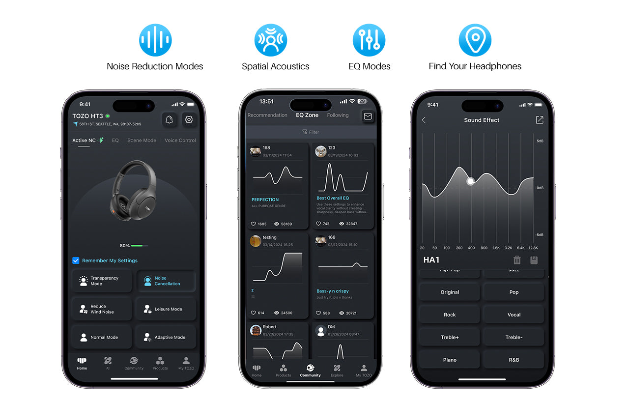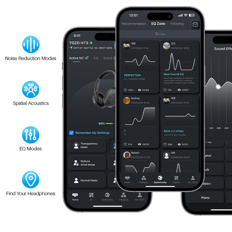 Fine-tune your sound with 32 EQ presets, access 100+ white noise tracks, or explore 2,000+ EQs shared by audiophiles worldwide.