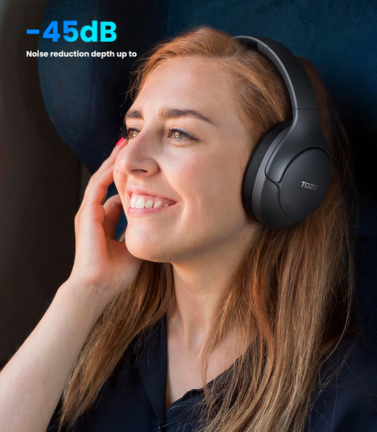 Intelligently adapts ANC levels to surrounding noise, reducing distractions with up to -45dB deep noise cancellation.