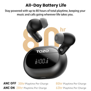 With a fully charged case, the TOZO NC3 can provide up to 80 hours of playback. Additionally, the earbuds support fast charging, so you can get hours of playtime with just a quick charge.