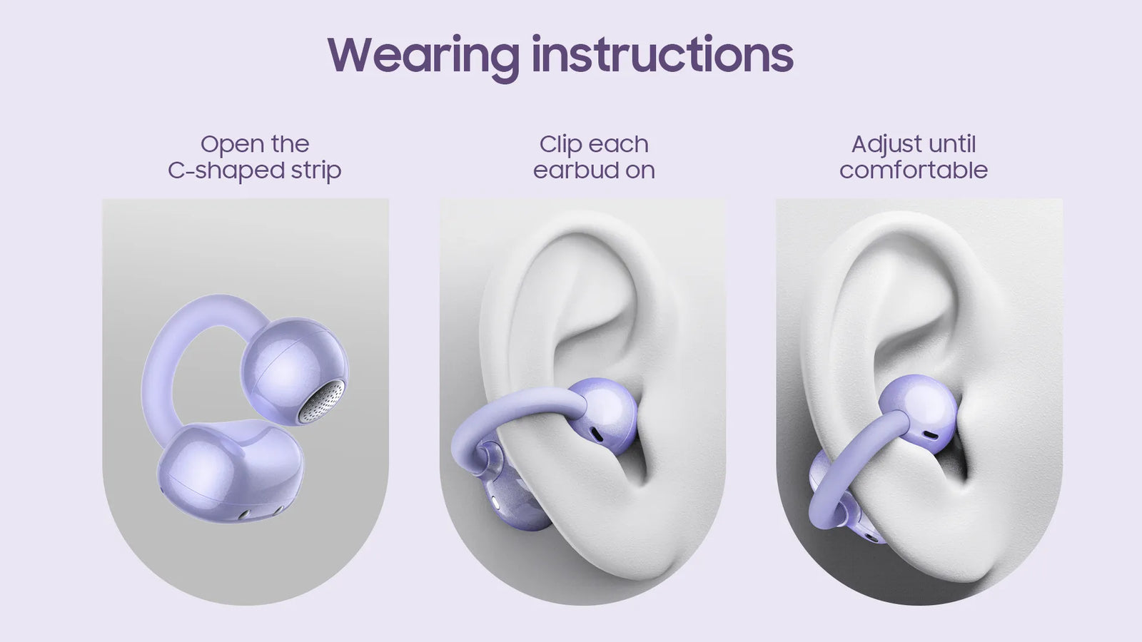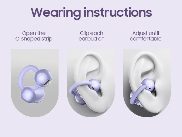 Para usar el OpenOrb, simplemente abra la tira en forma de C, coloque el auricular en su oreja y ajústelo hasta que se sienta seguro y cómodo. El anillo flexible de TPU se adapta a la mayoría de los tamaños de oreja.