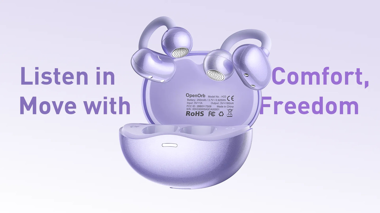 Fabricado con TPU agradable para la piel y un diseño de anillo para la oreja altamente elástico, OpenOrb se adapta a diferentes tamaños de orejas, lo que garantiza un ajuste seguro pero suave para un uso prolongado.