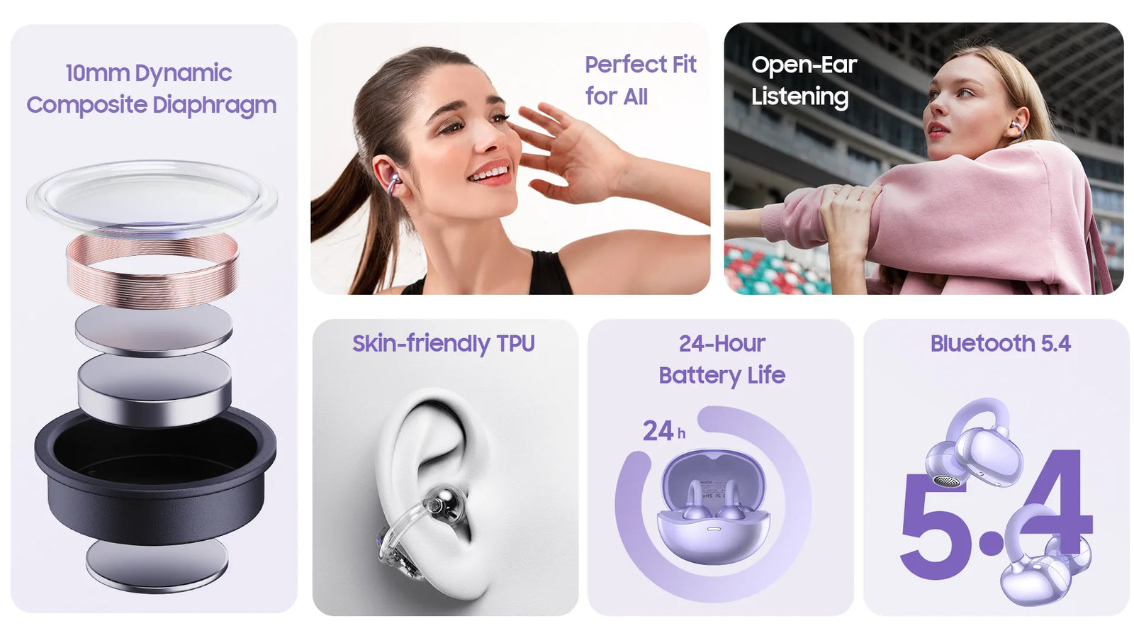 Con un peso de tan solo 4,9 g, el innovador diseño de oído abierto garantiza una experiencia auditiva transpirable y sin presión, manteniendo sus oídos cómodos durante todo el día.