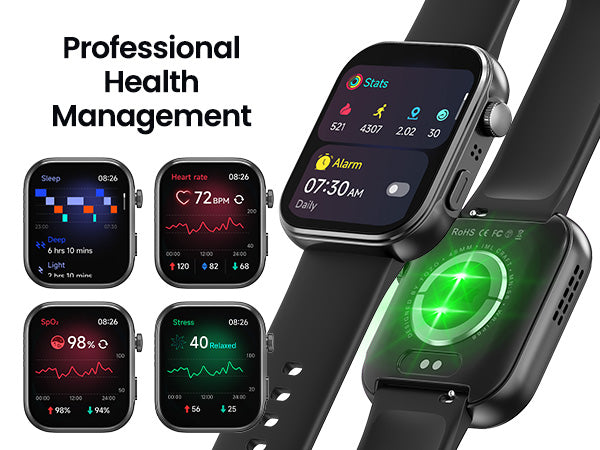 [Gestión de la salud profesional] Controle con precisión la frecuencia cardíaca, la saturación de oxígeno en sangre y los niveles de estrés para brindarle una descripción general integral de la salud y ayudarlo a administrar mejor su salud.