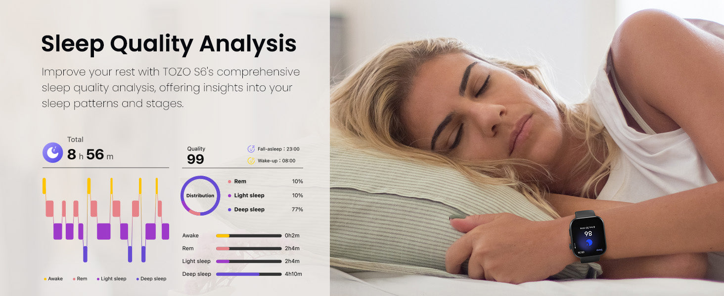 [Monitoreo del sueño] Análisis detallado de los patrones de sueño, incluido el sueño profundo, el sueño ligero y otras etapas, para comprender mejor su estado de descanso y ayudarlo a mejorar la calidad del sueño.