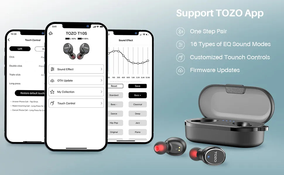 Los TOZO T10S ofrecen graves potentes (16 Hz como mínimo), medios suaves y agudos claros (hasta 20 kHz), lo que permite reproducir vívidamente cada detalle de la música.