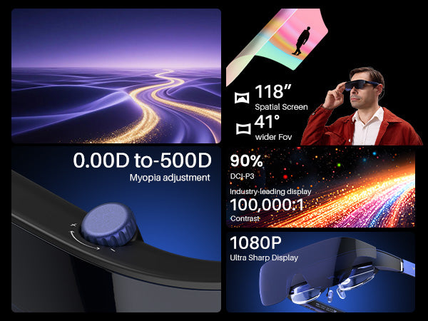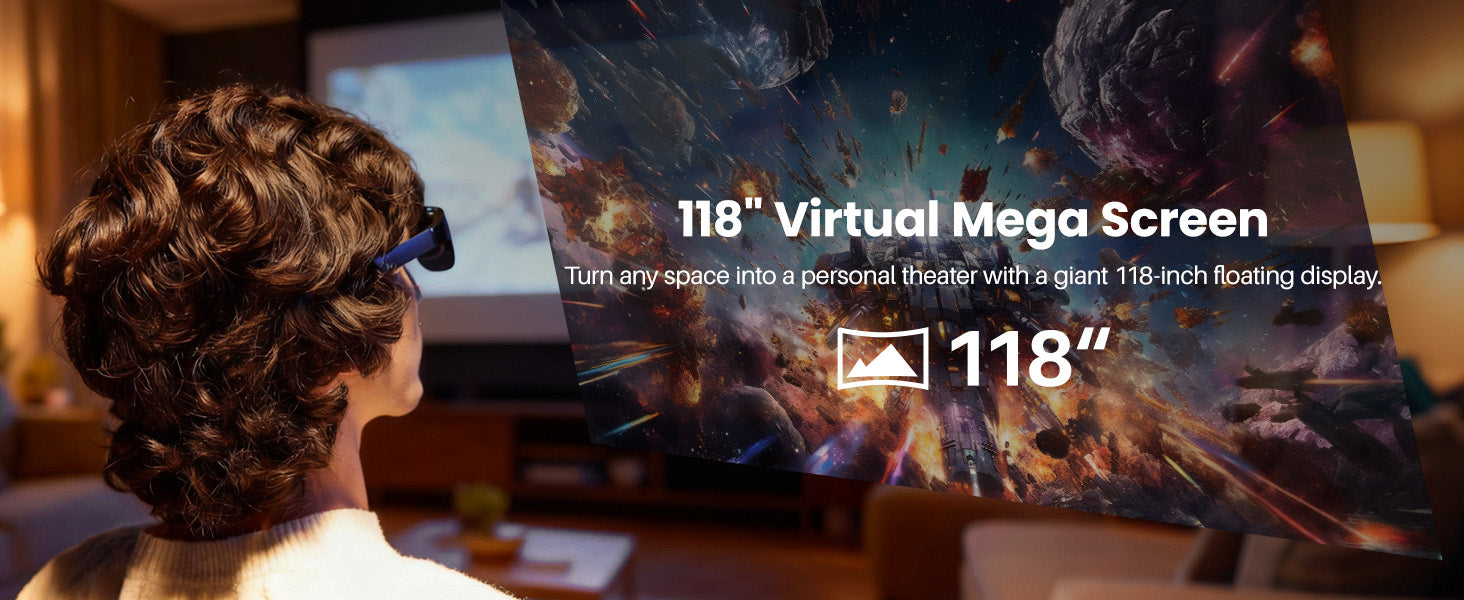 The VIZO V1 simulates a massive 118-inch virtual mega screen right in front of your eyes. This, combined with 1080p FHD resolution and a 100,000:1 contrast ratio, provides a personal theater experience with crisp, vivid, and lifelike clarity.