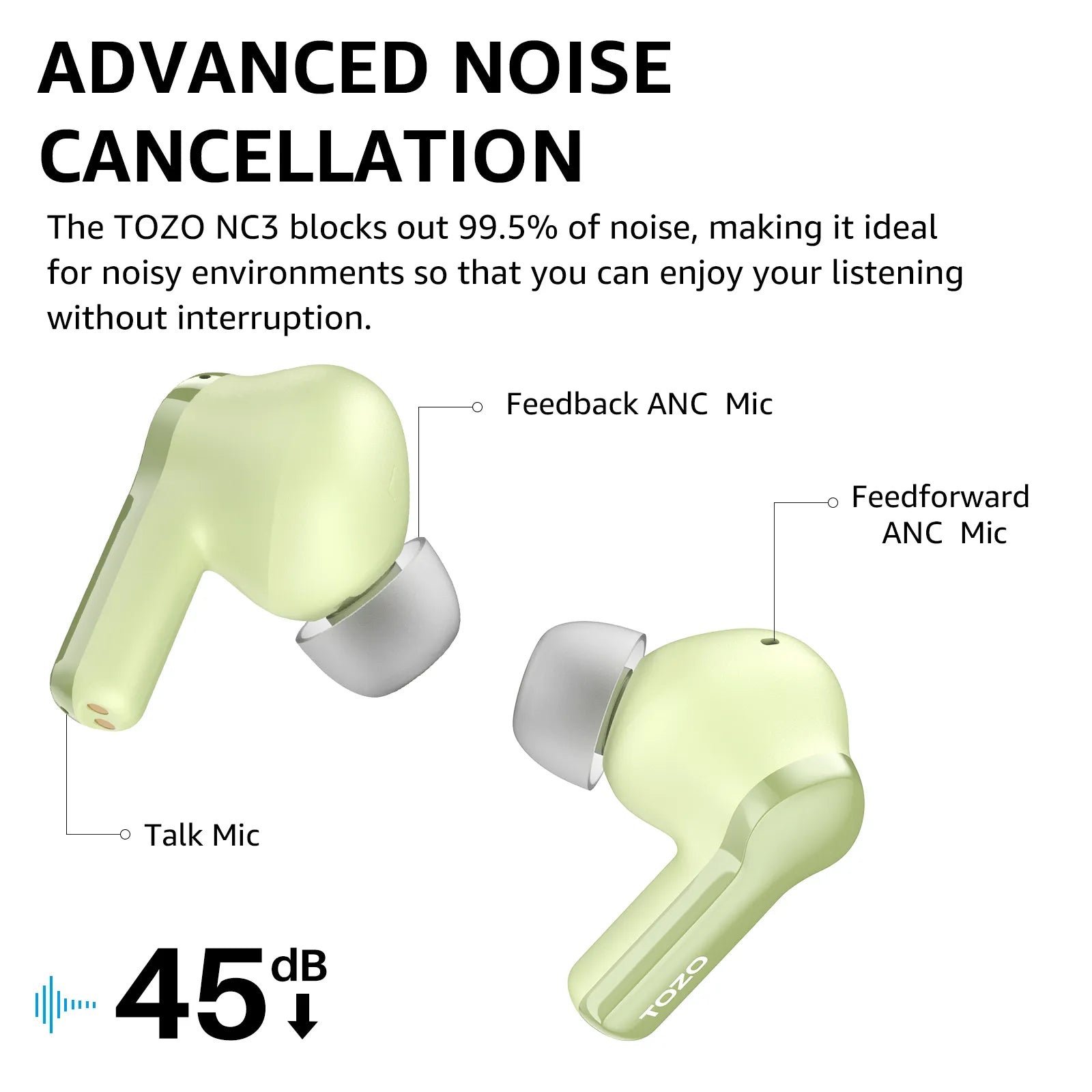 TOZO NC3 には Bluetooth 5.3 が搭載されており、高速で安定した接続を実現します。このテクノロジーは電力効率にも役立つため、ドロップアウトが少なく、シームレスなオーディオ体験を楽しむことができます。