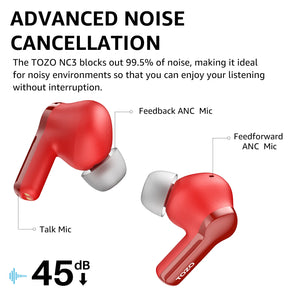 TOZO NC3 で優れたサウンドを堪能してください。インテリジェントなノイズキャンセリングが環境に自動的に適応します。強力な 12mm ダイナミック ドライバーを搭載したこのイヤホンは、豊かな低音と鮮明な高音を生み出し、上質なリスニング体験を実現します。トリプル マイク ノイズ低減技術でクリアな通話をお楽しみいただけます。急速充電対応で最大 55 時間駆動します。TOZO アプリで体験をカスタマイズし、Bluetooth 5.3 で高速かつ安定した接続を実現します。低遅延モードでは、オーディオとビジュアルが完全に同期され、どこにいても臨場感あふれるエンターテイメント体験をお楽しみいただけます。