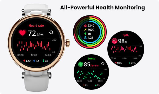 Busy schedule? One quick tap gives you instant updates on your heart rate, blood oxygen, and stress levels—keeping your wellness front and center.