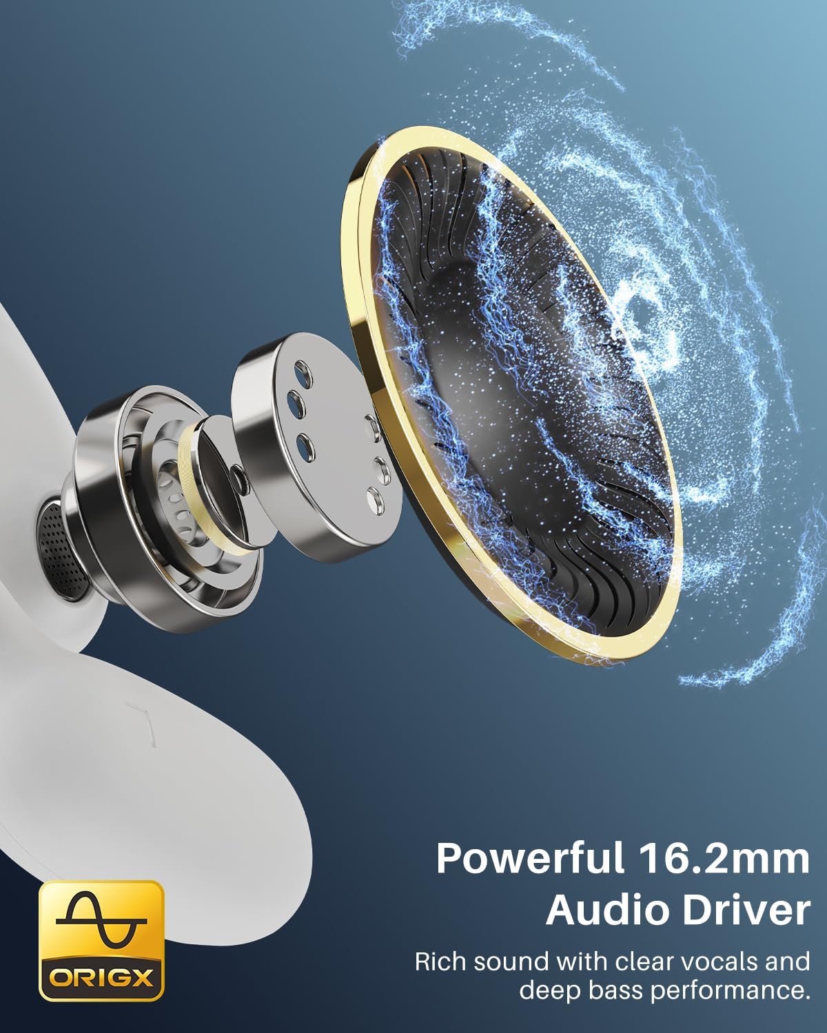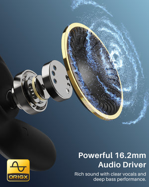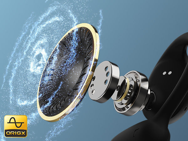 The headphones use air conduction technology and 16.2mm dynamic drivers to deliver clear, focused, and exceptional sound quality.