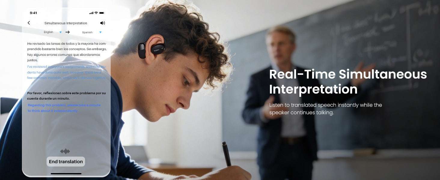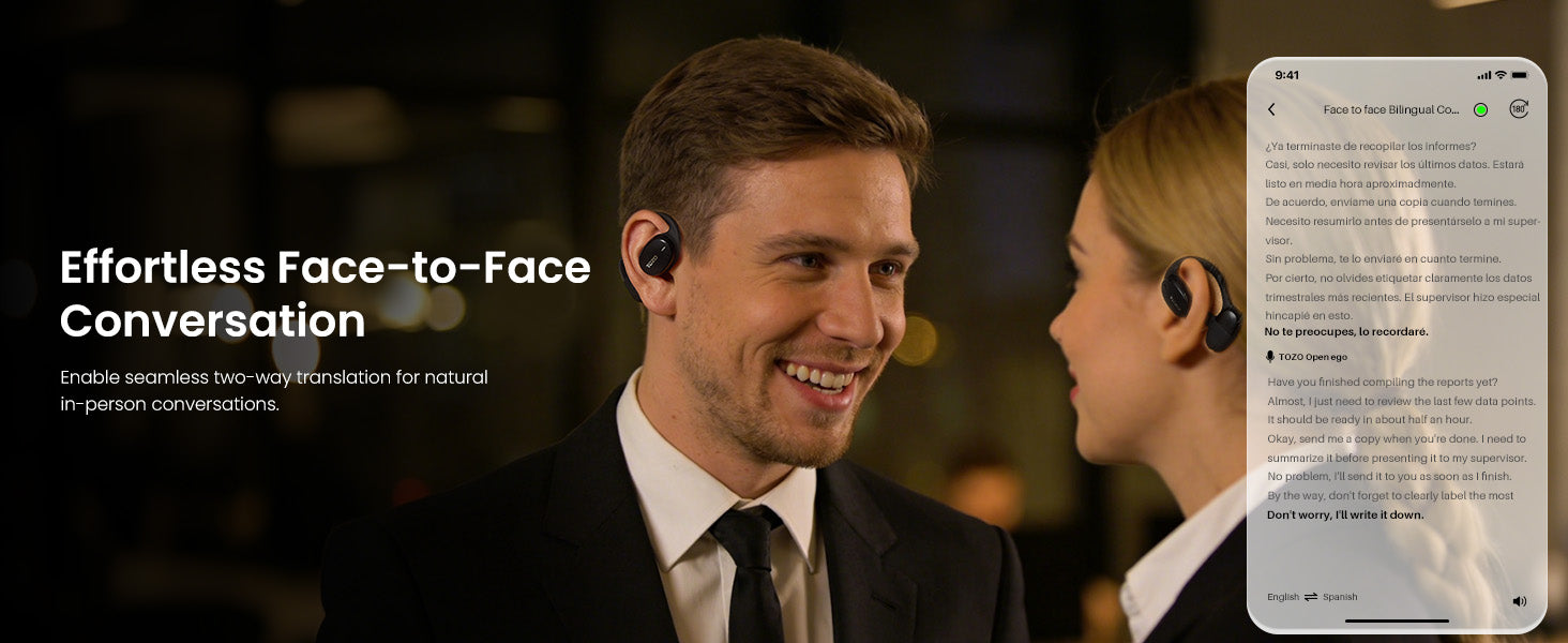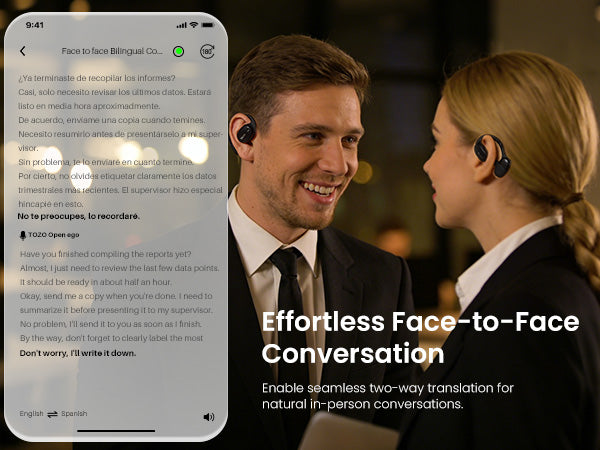 Connect the headphones to your phone via Bluetooth and use the TOZO APP for real-time translation. Supports 140 + languages with real-time response and high accuracy.