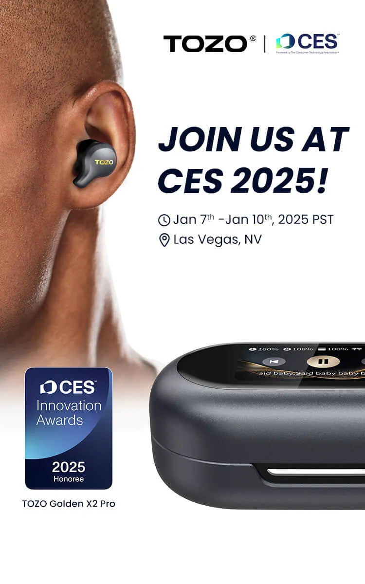 You're invited to witness TOZO groundbreaking advancements in TWS audio, smart wearables, and AI technology at CES 2025. Explore our latest product lineup and experience the future of innovation firsthand.