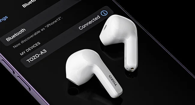 Pick up 2 headsets from the charging case and they will connect each other automatically. Then only one step easily enter mobile phone's Bluetooth setting and choose "TOZO-A3" to pair the earbuds.