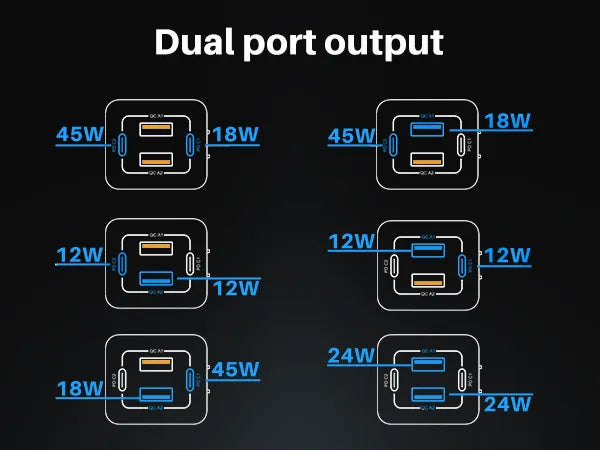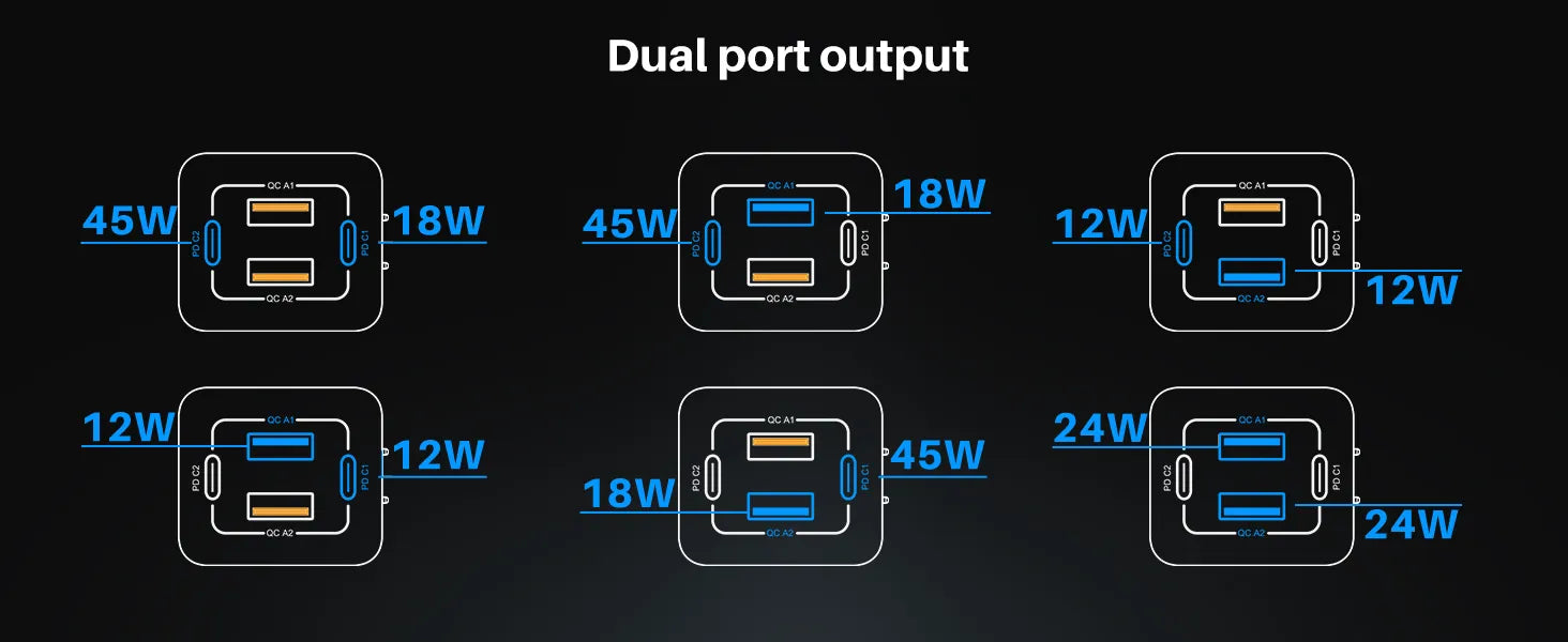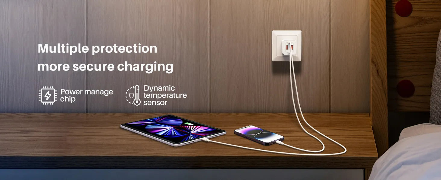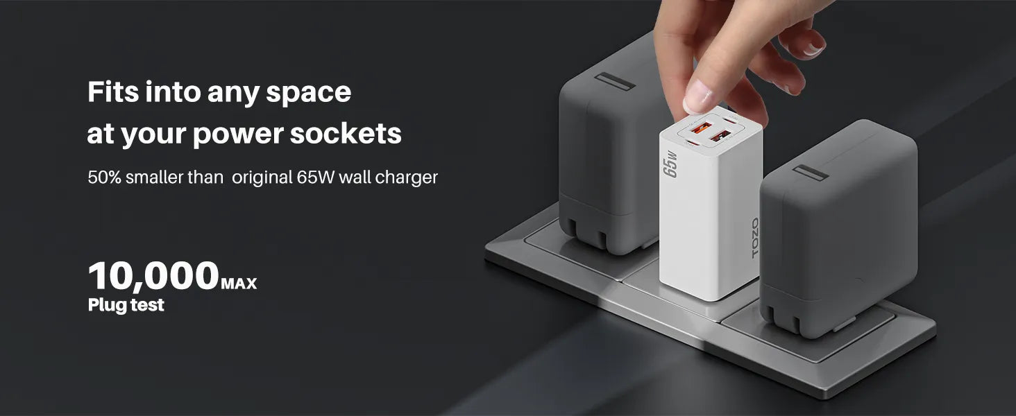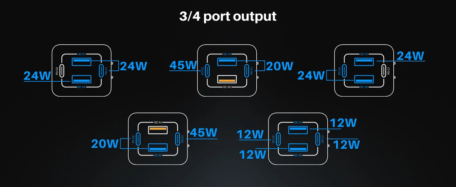 High-Efficiency with Multi USB Port Wall Charger:Powerful 65W PD output for fast charging. Charge up to 4 devices simultaneously.
