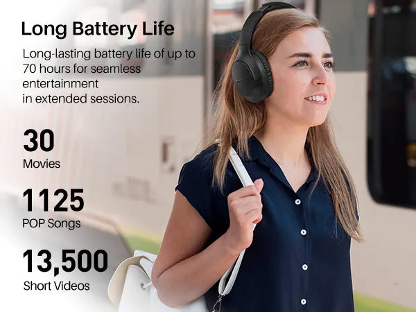 [Long Battery Life]Long-lasting battery life of up to 70 hours for seamless entertainment in extended sessions.
