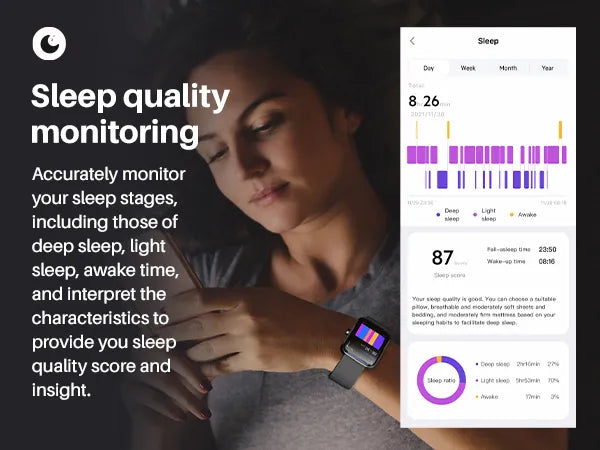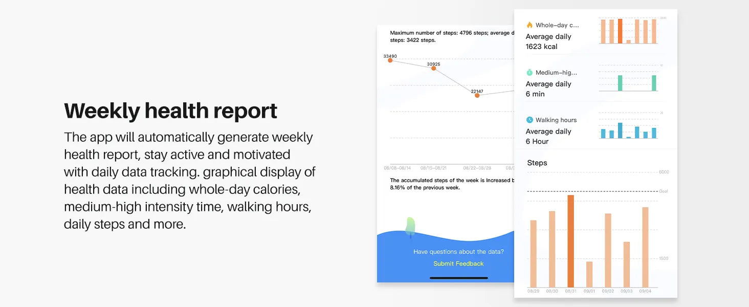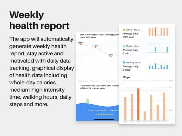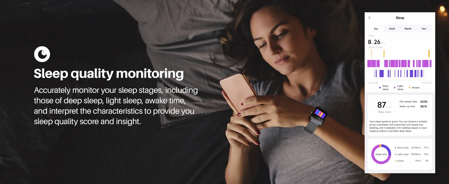 Heart Rate, Sleep, Blood & Activity Tracking: Monitor your heart rate in real time, analyze your sleep quality, track steps, distance, calories burned, and active minutes, and measure blood oxygen saturation.