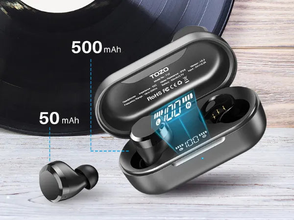 Battery capacity: 50mAh(earphones)/500mAh(charging case)