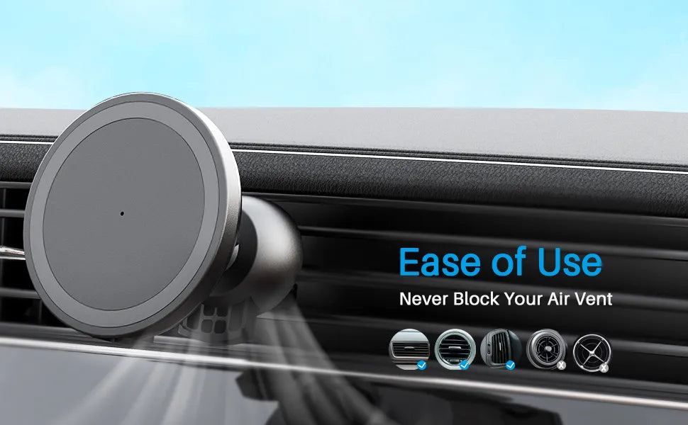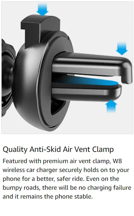 • Quality Anti-Skid Air Vent Clamp: Premium air vent clamp securely holds your phone, even on bumpy roads, ensuring stable charging.